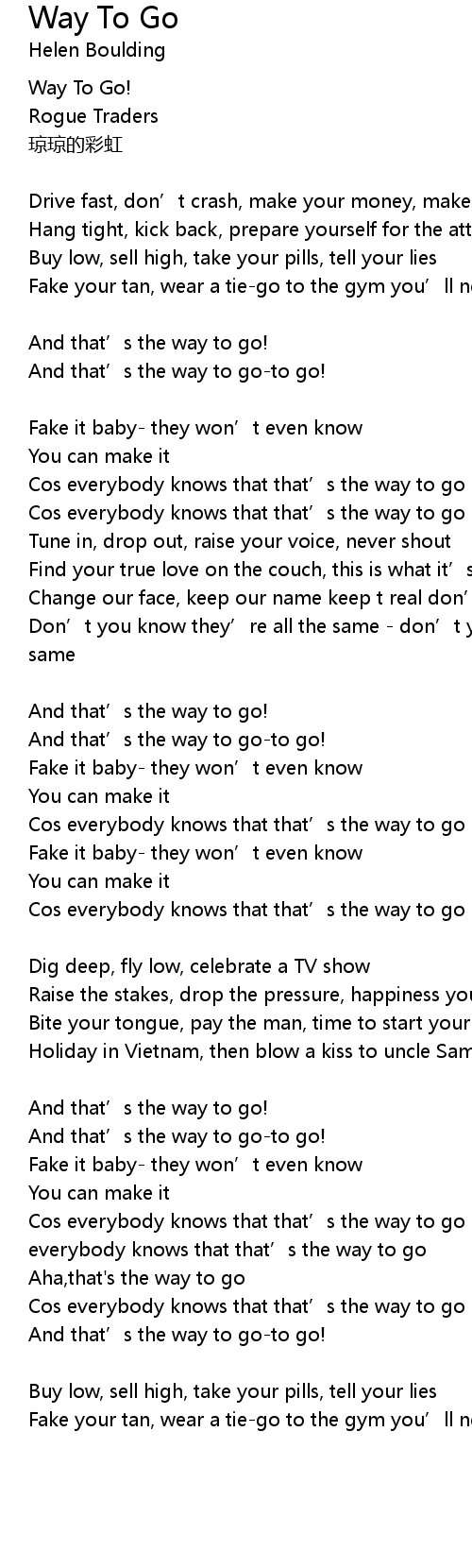 | Cos everybody knows that that' s the way to go | |