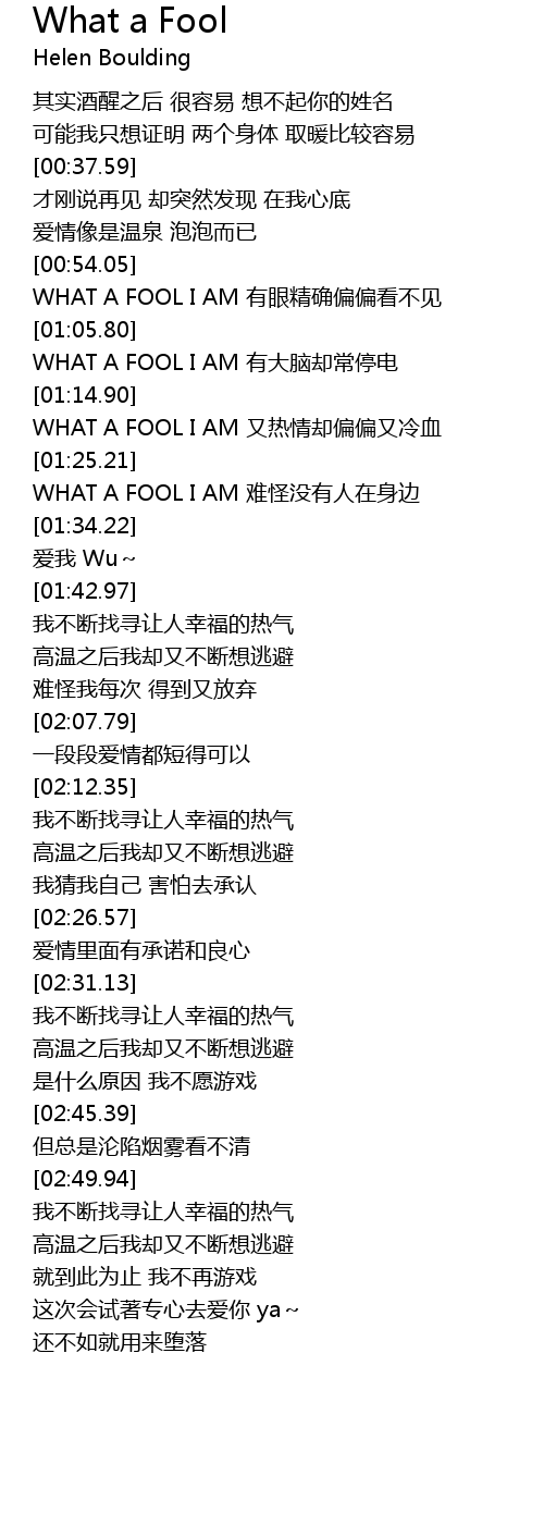 | [01:07.50] | WHAT A FOOL I AM yǒu dà nǎo què cháng tíng diàn |