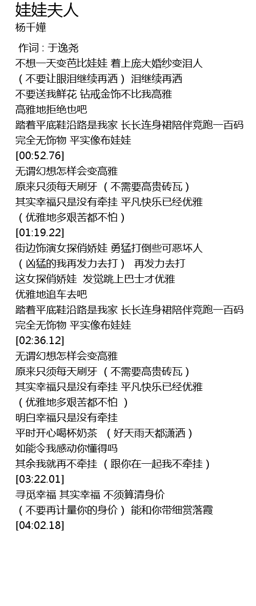 | [02:28.62] | 完全无饰物 平实像布娃娃 |