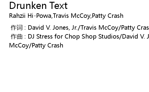 | [00:00.000] | 作曲 : DJ Stress for Chop Shop Studios/David V. Jones, Jr./Travis McCoy/Patty Crash |