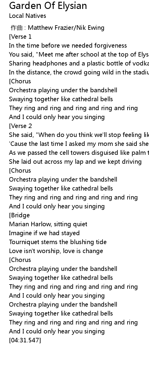 | [04:10.283] | Swaying together like cathedral bells |