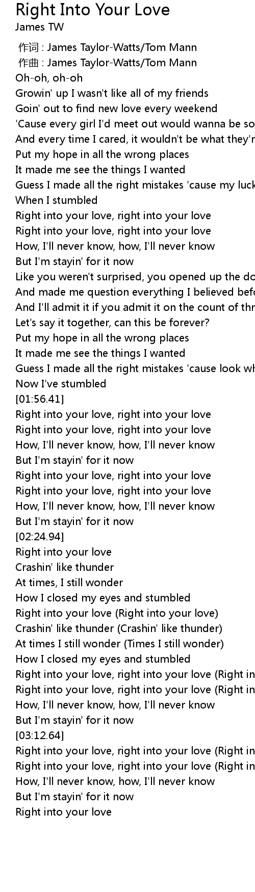 | [03:18.23] | Right into your love, right into your love Right into your love |