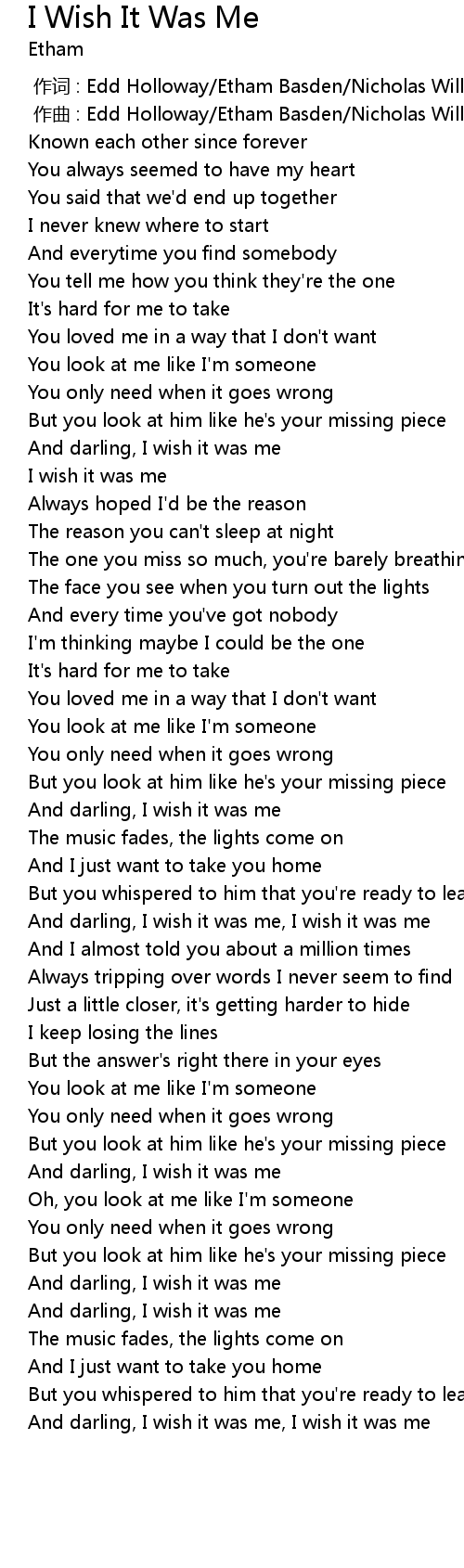 | [03:21.34] | And darling, I wish it was me, I wish it was me |
