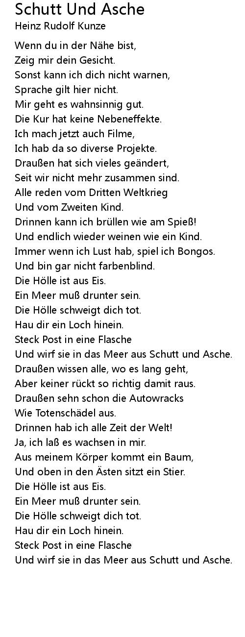 | Und wirf sie in das Meer aus Schutt und Asche. | |