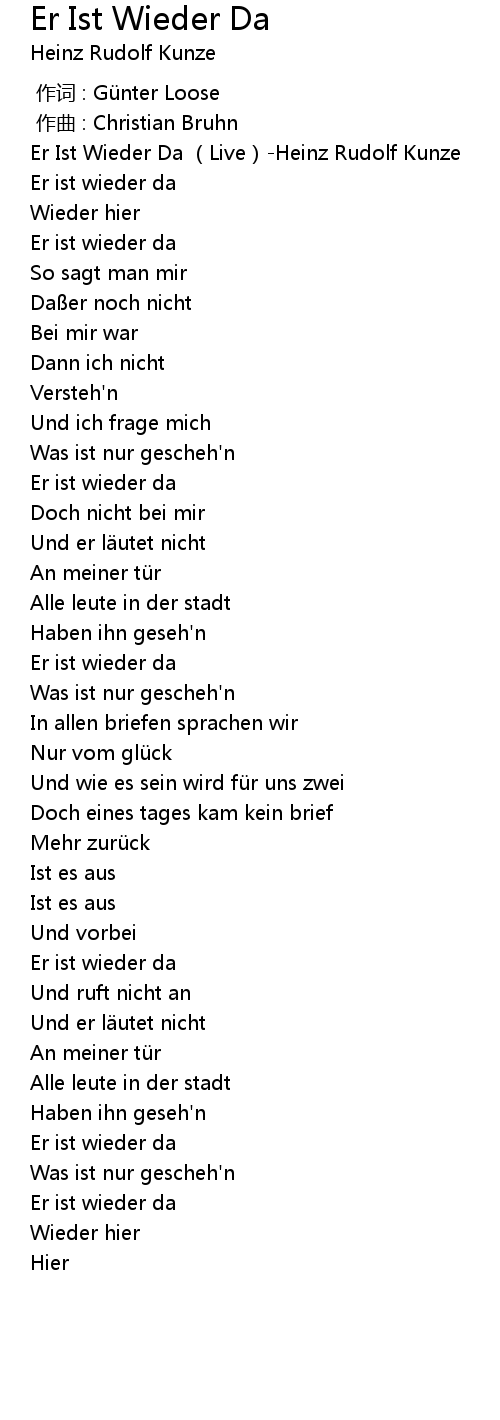 | [00:00.283] | Er Ist Wieder Da (Live)-Heinz Rudolf Kunze |