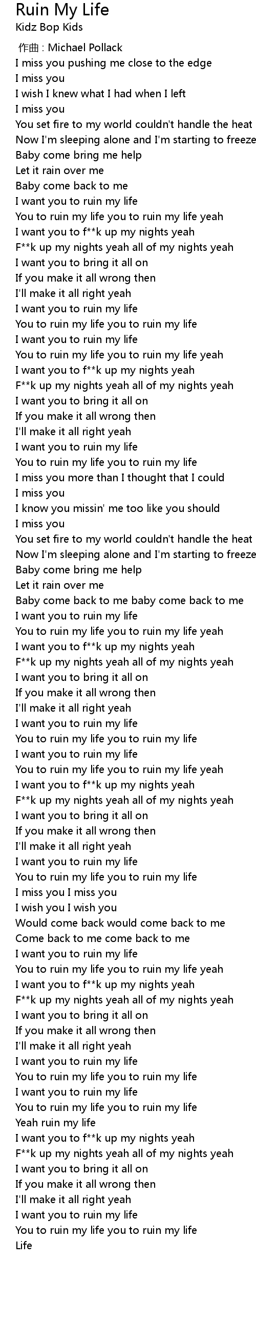 | [03:03.32] | You to ruin my life you to ruin my life |