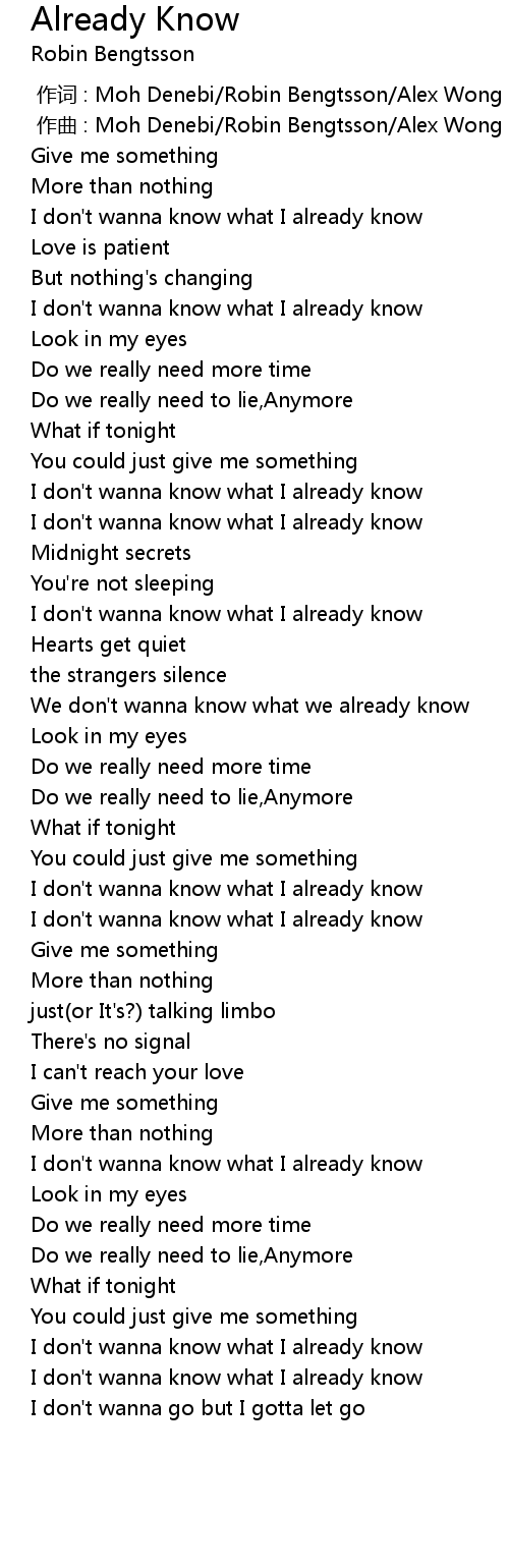 | [00:00.000] | 作词 : Moh Denebi/Robin Bengtsson/Alex Wong |