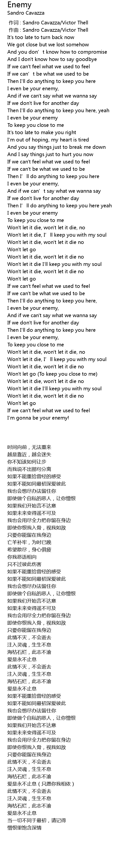 | [00:00.000] | zuo ci : Sandro Cavazza Victor Thell |