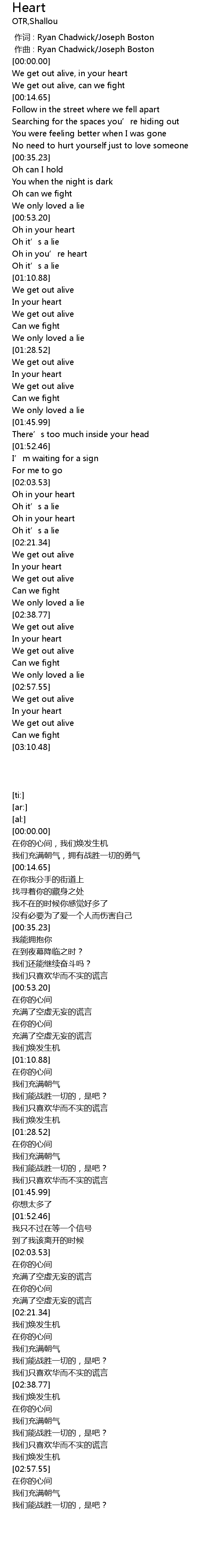 | [00:00.000] | zuo ci : Ryan Chadwick Joseph Boston |