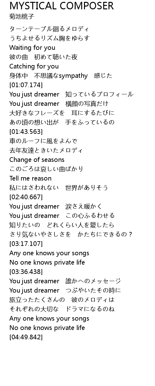 | [03:55.664] | You just dreamer 誰かへのメッセージ |