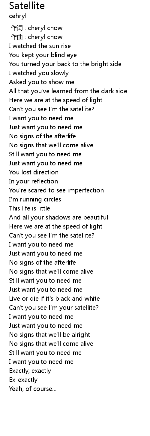 | [02:41.442] | Can' t you see I' m your satellite? |
