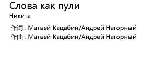 | [00:00.000] | 作词 : Матвей Кацабин/Андрей Нагорный |