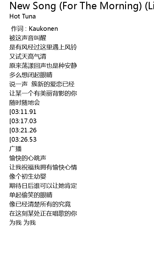 | [00:00.00] | 作词 : Kaukonen |