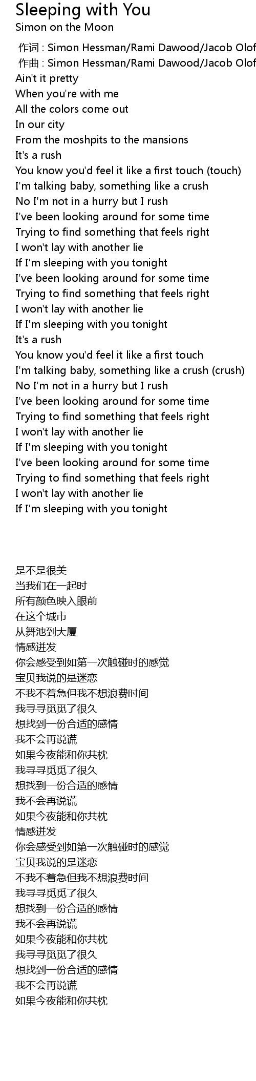 | [00:00.000] | 作词 : Simon Hessman/Rami Dawood/Jacob Olofsson |