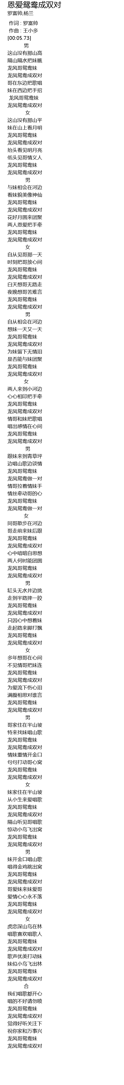 | [02:39.11] | 龙风哥鸳鸯妹 |