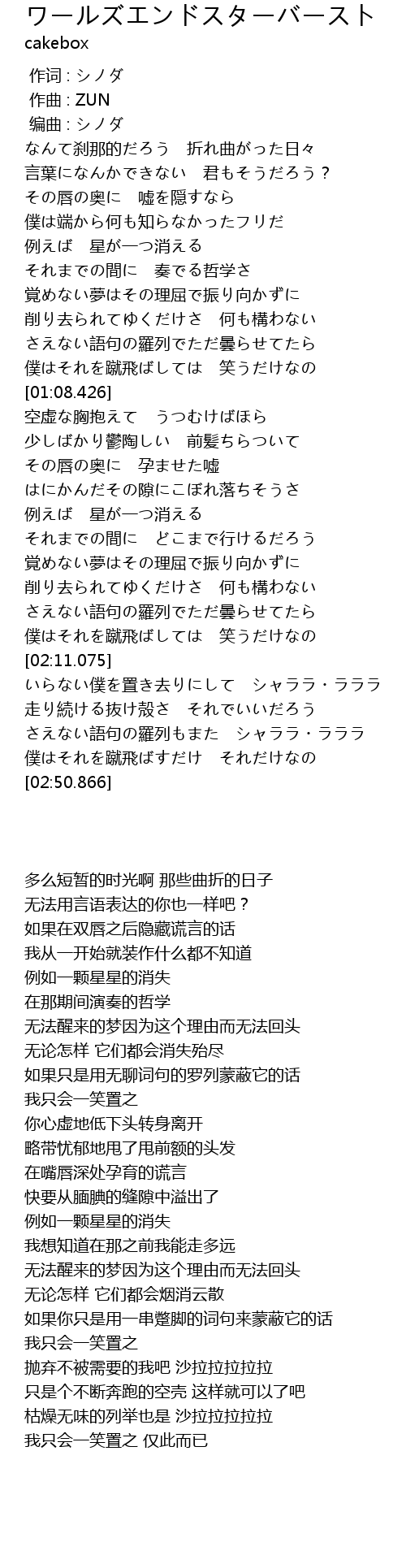 | [02:40.847] | さえない語句の羅列もまた シャララ・ラララ |
