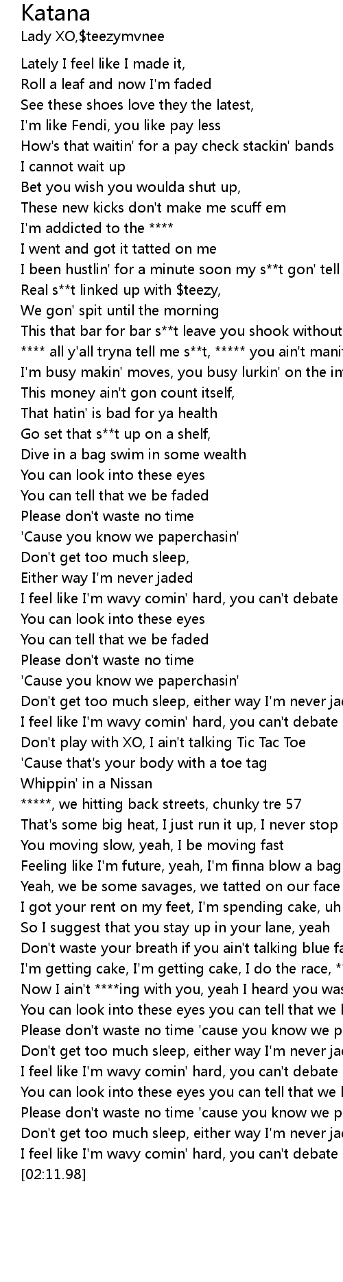 | [00:28.90] | Real s**t linked up with $teezy, |