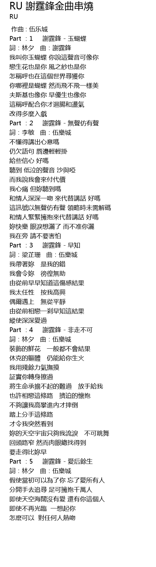 | [00:00.043] | Part :1 謝霆鋒 - 玉蝴蝶 |