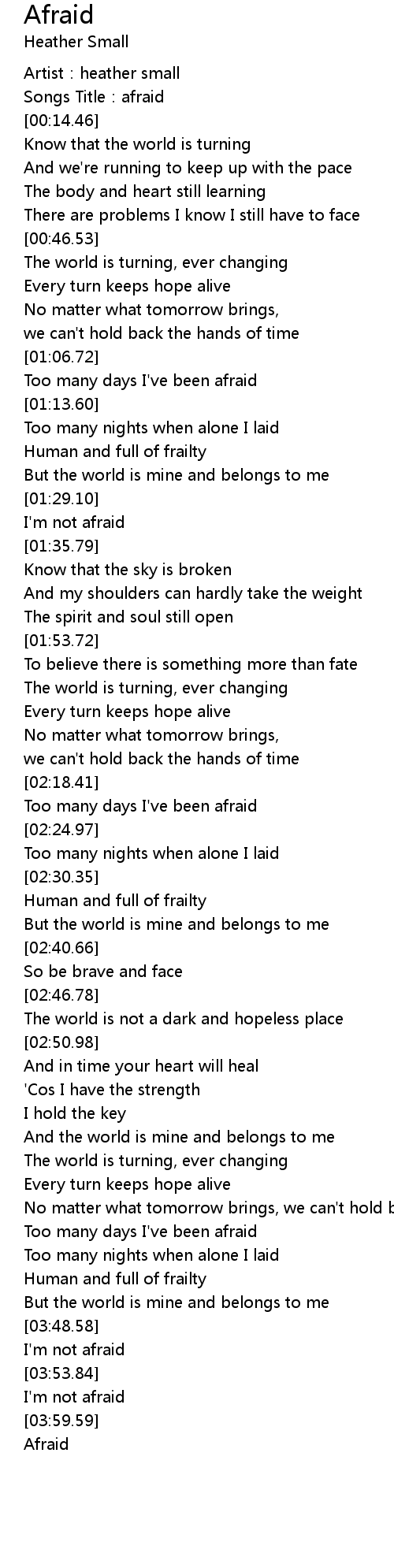 | [03:50.21] | I' m not afraid |