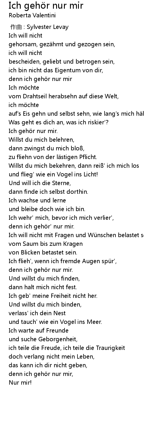 | [00:22.792] | ich bin nicht das Eigentum von dir, |