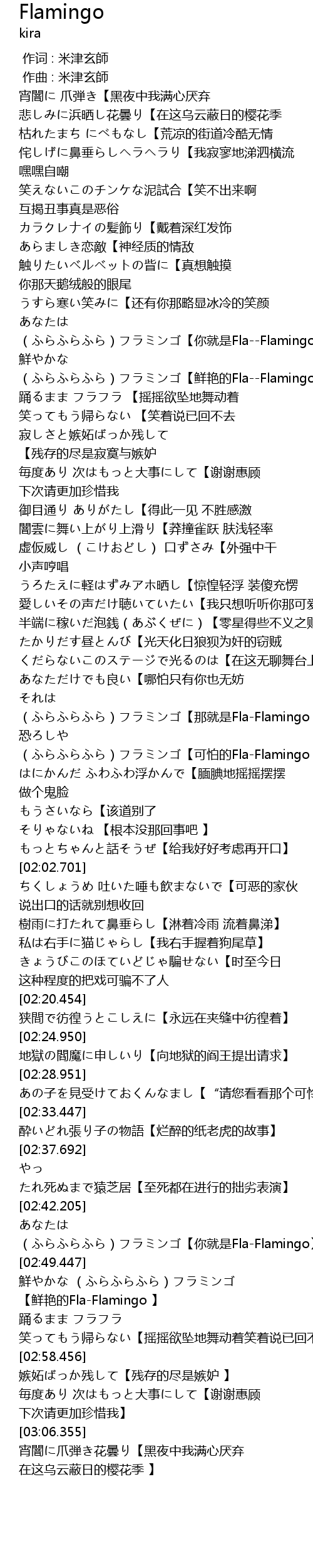 | [02:45.446] | あなたは (ふらふらふら)フラミンゴ【你就是Fla-Flamingo】 |
