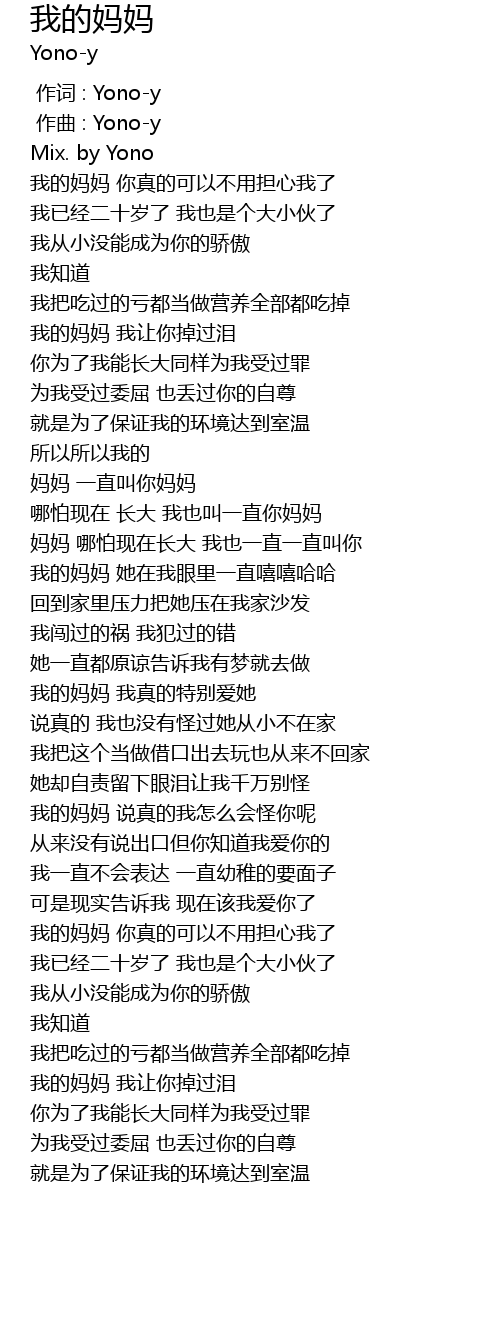 | [02:23.419] | 我的妈妈 我让你掉过泪 |