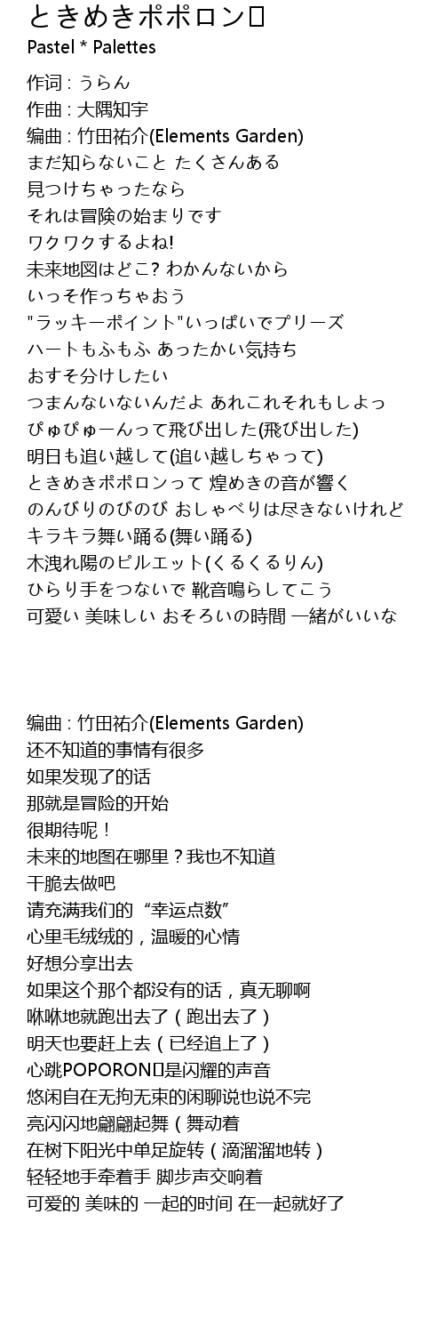 | [00:55.33] | ときめきポポロンって 煌めきの音が響く |