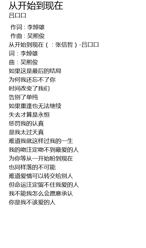 | [00:00.00] | 从开始到现在(:张信哲)-吕口口 |
