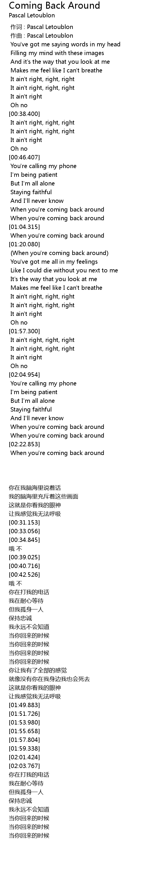 | [00:00.000] | zuo ci : Pascal Letoublon |