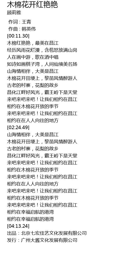 | [03:11.05] | 来吧来吧来吧!让我们相约在昌江 |