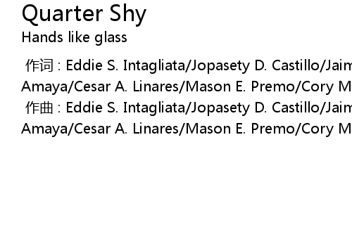| [00:00.000] | 作词 : Eddie S. Intagliata/Jopasety D. Castillo/Jaime E. Amaya/Cesar A. Linares/Mason E. Premo/Cory M. McMahan |