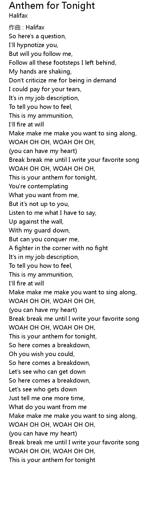 | This is your anthem for tonight, | |
