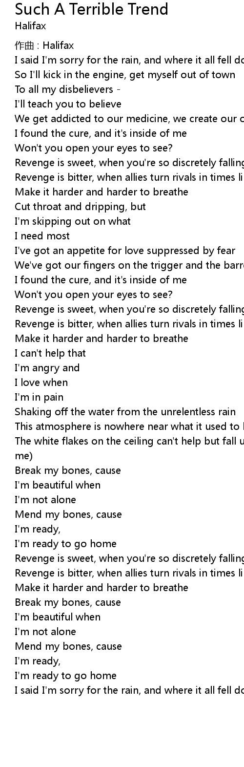 | Revenge is sweet, when you' re so discretely falling out of reach, yeah | |
