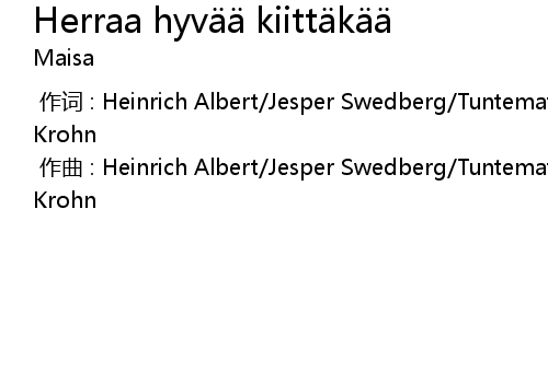 | [00:00.000] | 作词 : Heinrich Albert/Jesper Swedberg/Tuntematon, Uud. Julius Krohn |