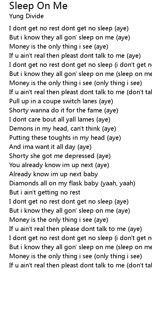 I dont get no rest dont get no sleep (i don't get no sleep) |