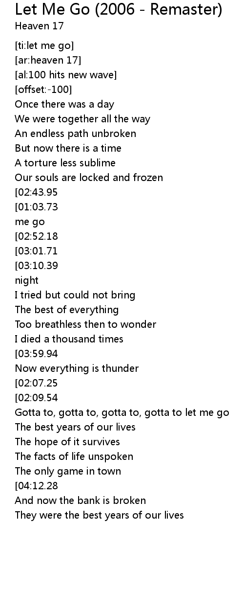 Let Me Go (2006 - Remaster) Lyrics