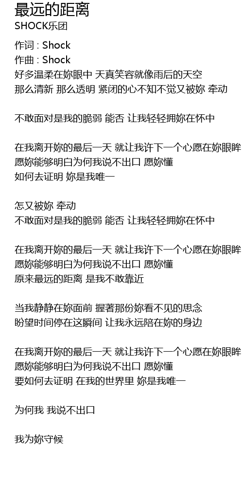 | 愿妳能够明白为何我说不出口 愿妳懂 | |