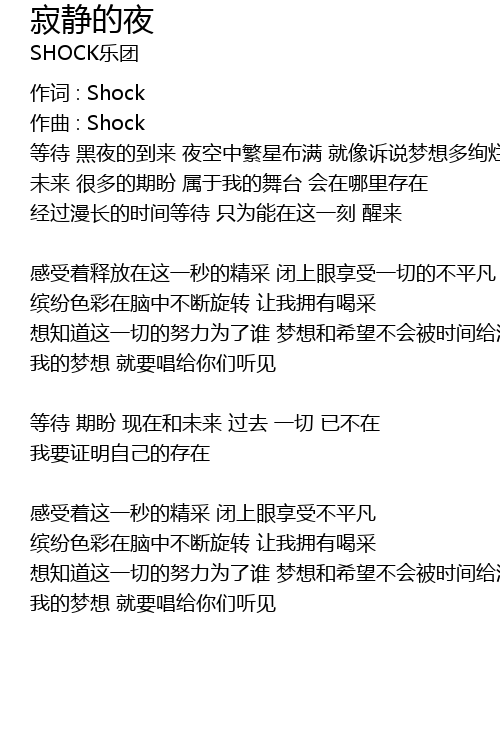| 等待 黑夜的到来 夜空中繁星布满 就像诉说梦想多绚烂 | |
