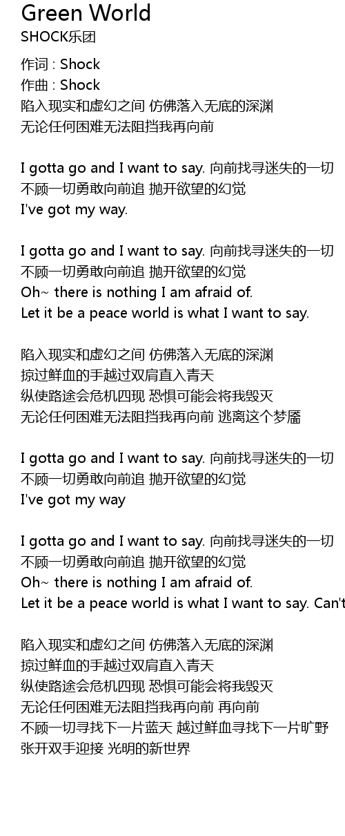 | Let it be a peace world is what I want to say. Can' t find my way | |