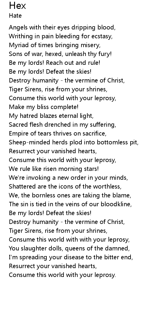 Consume this world with with your leprosy, |