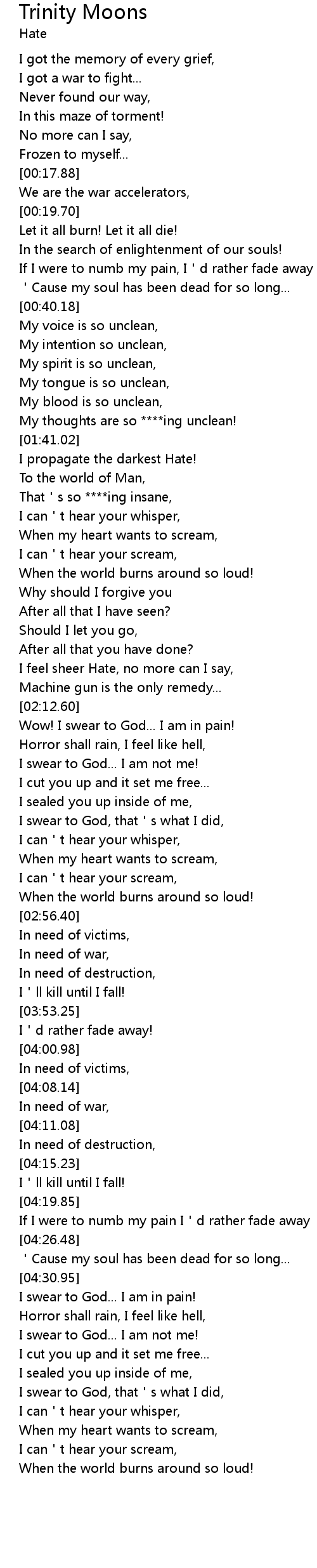 | [01:38.64] | My thoughts are so ****ing unclean! |