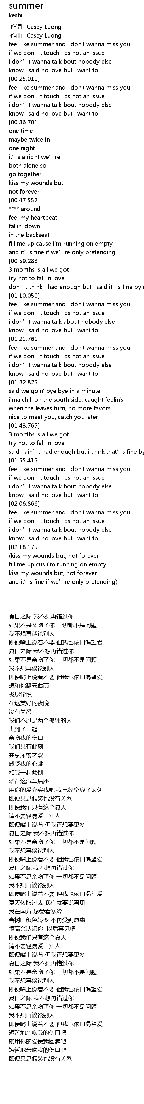 | [01:55.577] | feel like summer and i don't wanna miss you |
