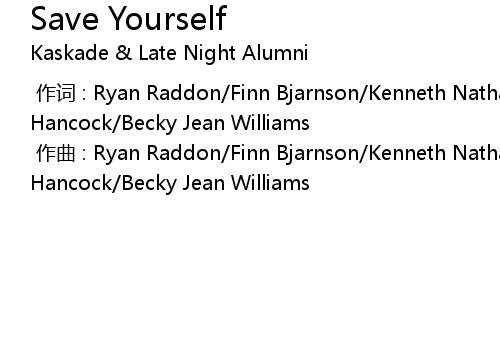 | [00:00.000] | 作词 : Ryan Raddon/Finn Bjarnson/Kenneth Nathaniel Pyfer/John Hancock/Becky Jean Williams |