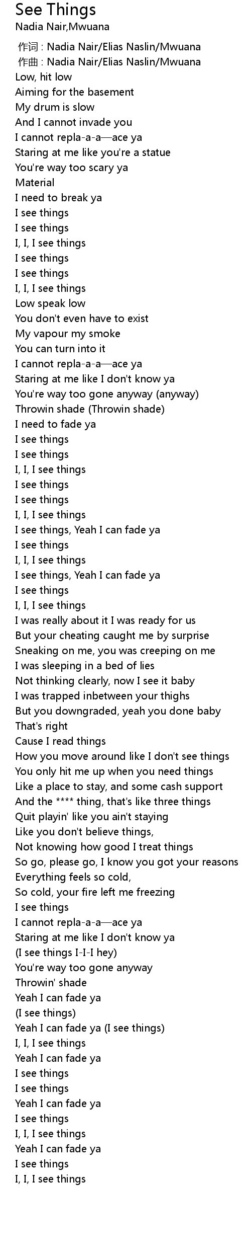 | [00:33.18] | I, I, I see things |