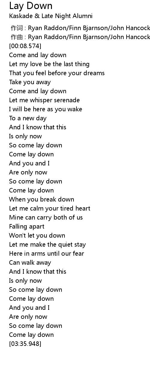 | [00:00.000] | 作词 : Ryan Raddon/Finn Bjarnson/John Hancock/Becky Jean Williams |