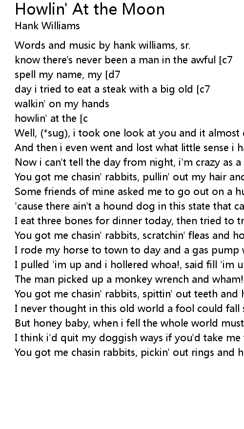 You got me chasin' rabbits, spittin' out teeth and howlin' at the moon. |