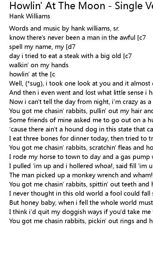 You got me chasin' rabbits, spittin' out teeth and howlin' at the moon. |