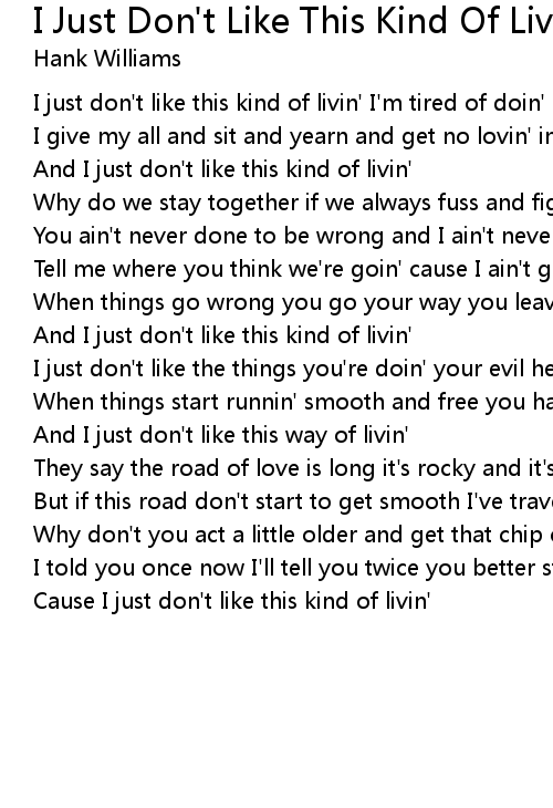 And I just don't like this kind of livin' |