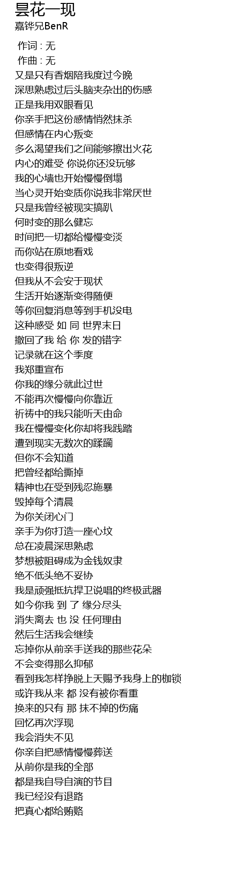 | [00:19.916] | 深思熟虑过后头脑夹杂出的伤感 |