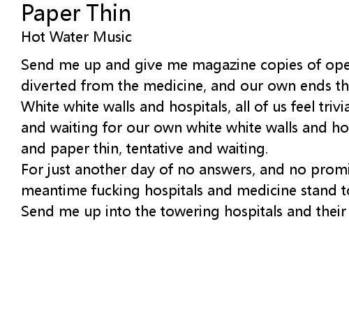 White white walls and hospitals, all of us feel trivial and relative, tentative and waiting for our own white white walls and hospitals, all of us feel trivial and paper thin, tentative and waiting. |